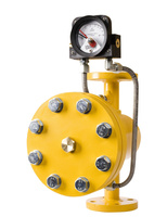 Gas pressure reducing and measuring point (MRS) for 2 horizontally installed gas meters, metal cabinet, yellow 1050x700x250