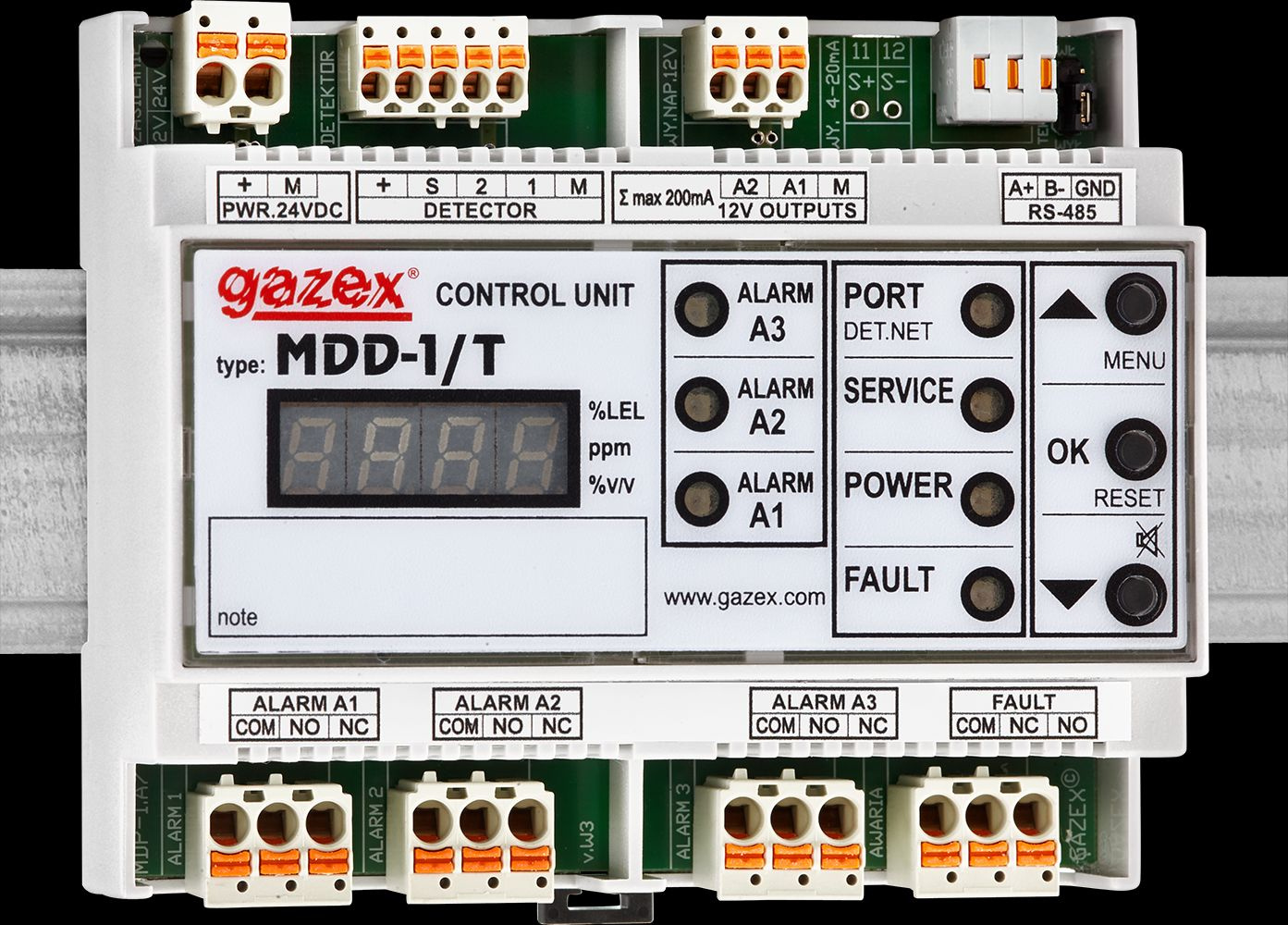 Measuring alarm modules type MDP-4(8,16) are designed to control and supply power to gas detectors of the type DEX/F, DEX/P, DEX/A and DG/F, DG.EN, DG/P produced by GAZEX, for use in Two-Way (or Measuring) Gas Detection System or in Active Gas System Safety GX (ASBIG®).