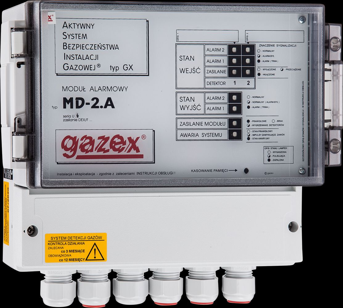 Modul dalam versi MD…Z dapat mengontrol a katup penutup gas. Modul tersebut merupakan komponen dari “sistem persinyalan dan penutupan” sesuai dengan persyaratan Peraturan Menteri Infrastruktur Republik Polandia tanggal 12 April 2002 tentang kondisi teknis yang harus dipenuhi oleh bangunan dan lokasinya (Jurnal Undang-Undang Tahun 2002 No. 75 + perubahannya).