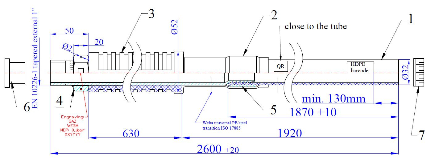 Underground gas entry pipe to building 32/25 with thread 1"