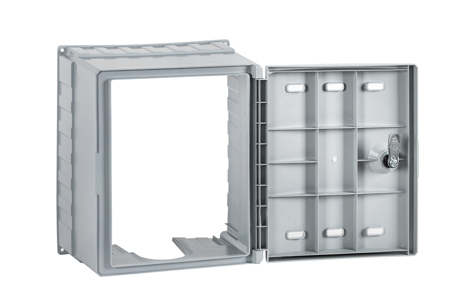 Lemari plastik untuk pemasangan di dinding bangunan.